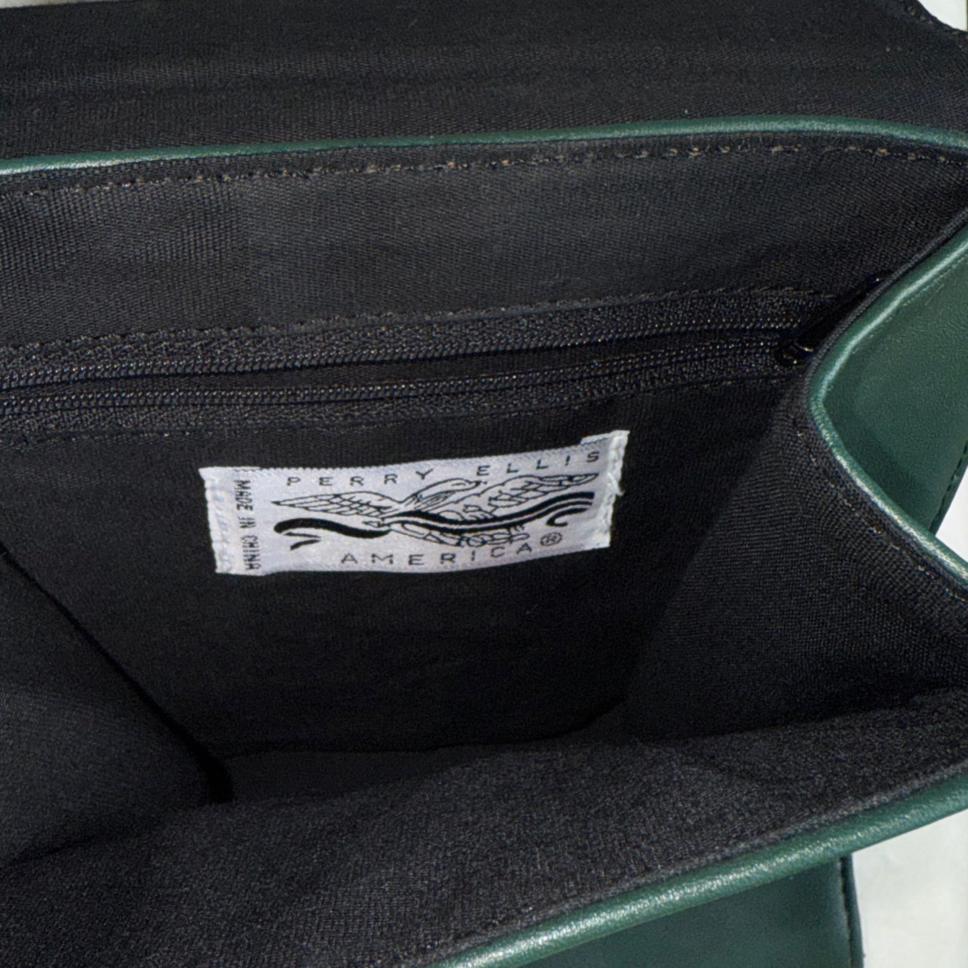 Minimalismo que impone. Este bolso Perry Ellis en verde esmeralda es el aliado perfecto para quienes quieren destacar sin esfuerzo. Su forma estructurada y su tamaño compacto lo hacen ideal para salir ligera pero con impacto — desde el brunch hasta la oficina.