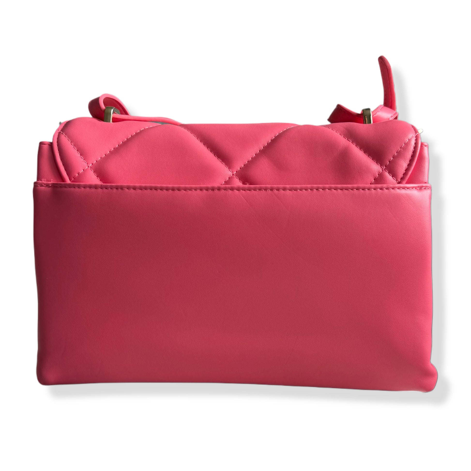 Un diseño estructurado y con textura que añade carácter a cualquier look. El color rosado vibrante y la cadena dorada crean el balance perfecto entre moderno y femenino.