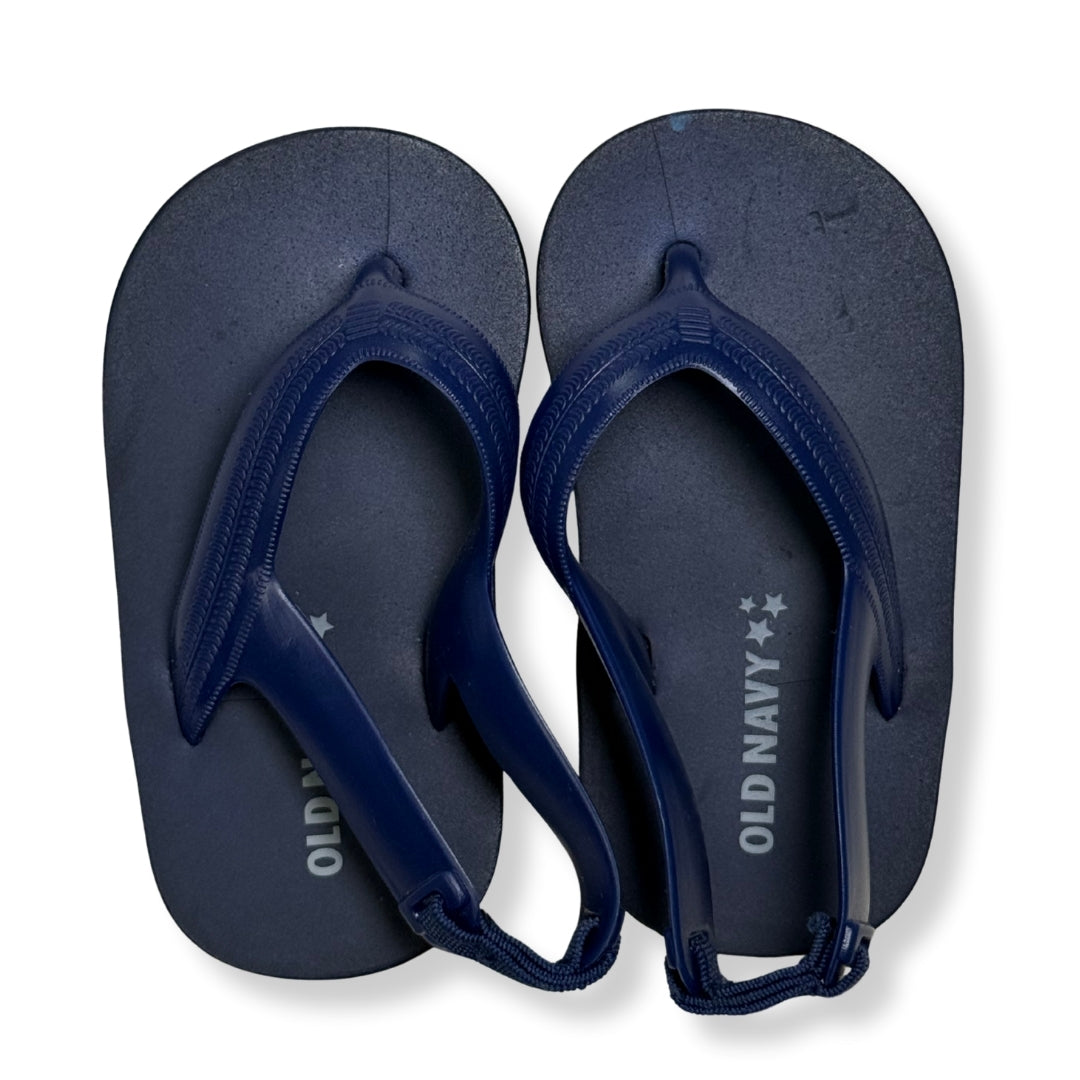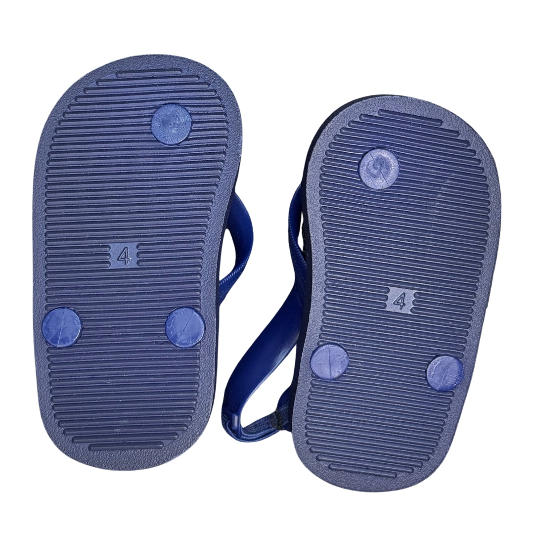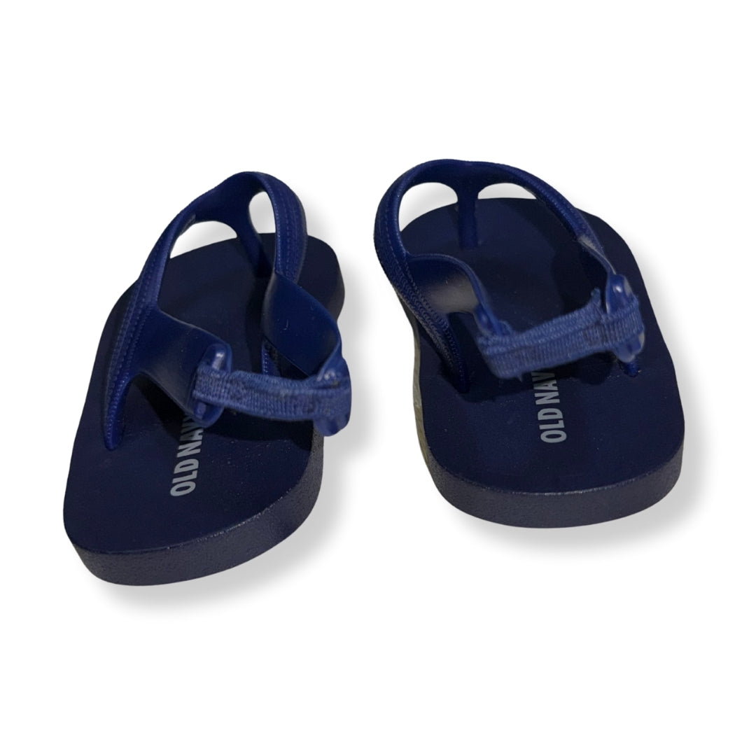 Sandalias tipo flip flop para bebé en color azul marino, con tira trasera elástica para mejor ajuste. Diseño ligero y flexible, ideales para playa, piscina o uso diario en climas cálidos.