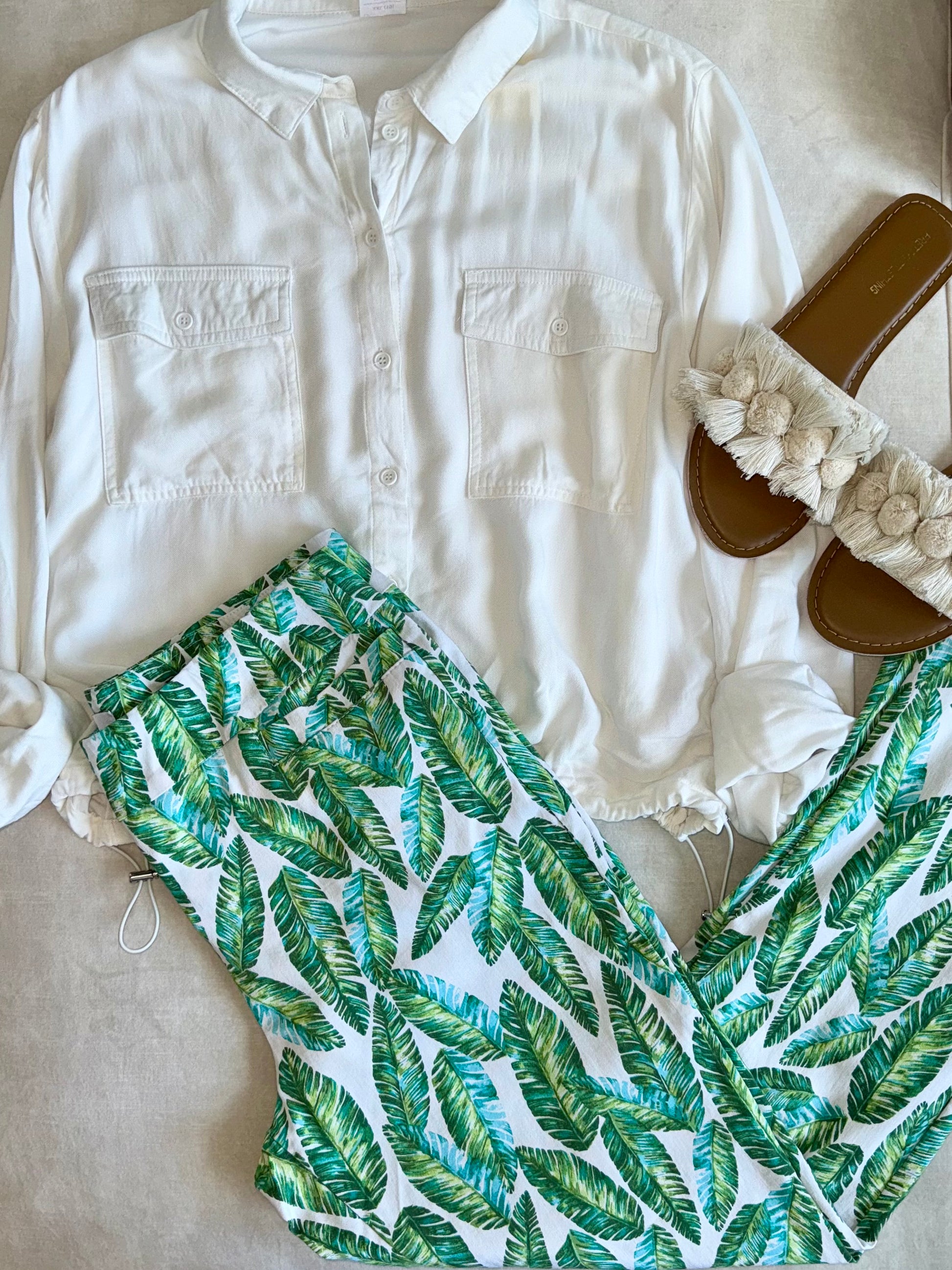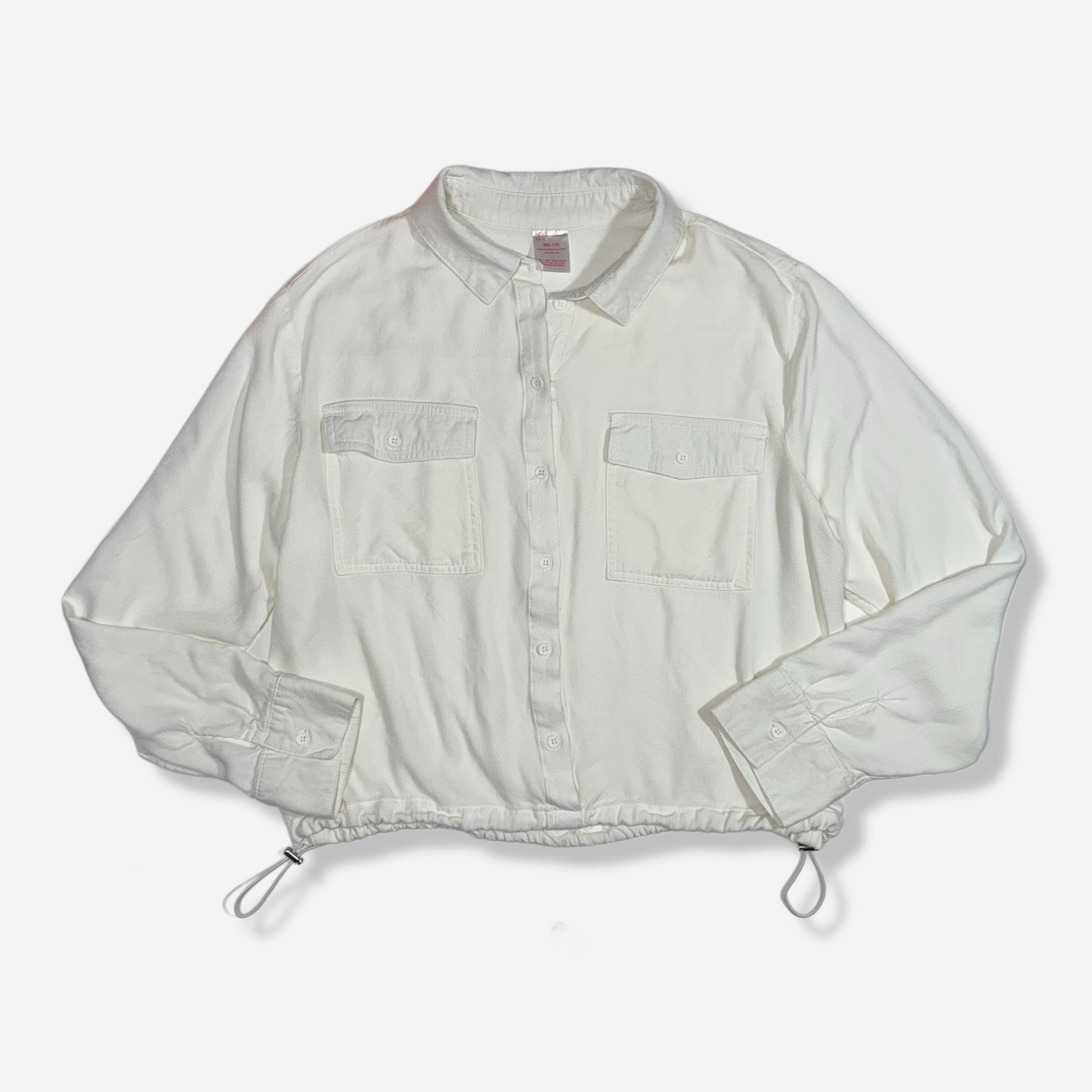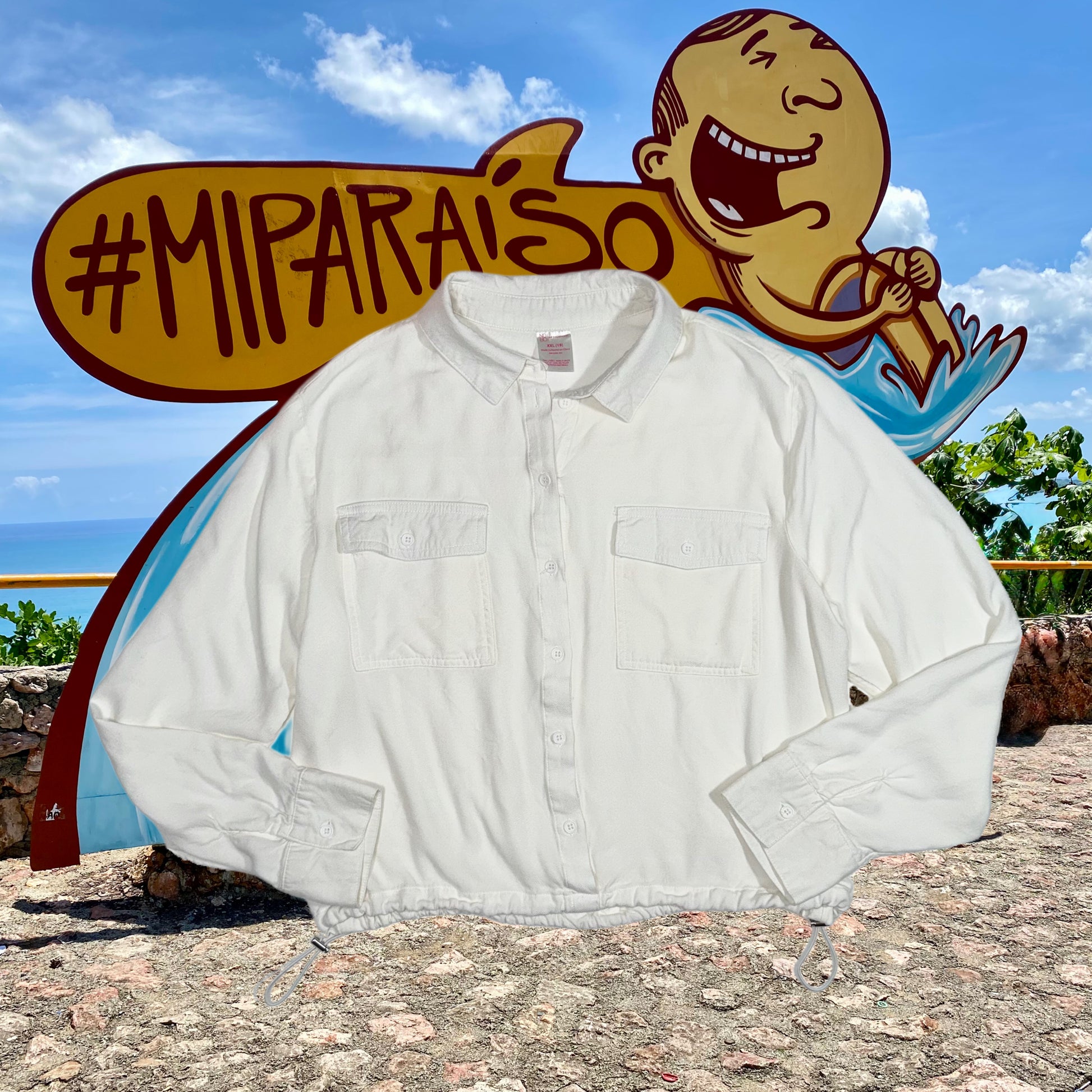Un básico blanco que no es tan básico. Esta camisa combina estructura y suavidad con un diseño relajado, bolsillos utilitarios y cordón ajustable en la cintura para lograr el fit ideal sin esfuerzo.