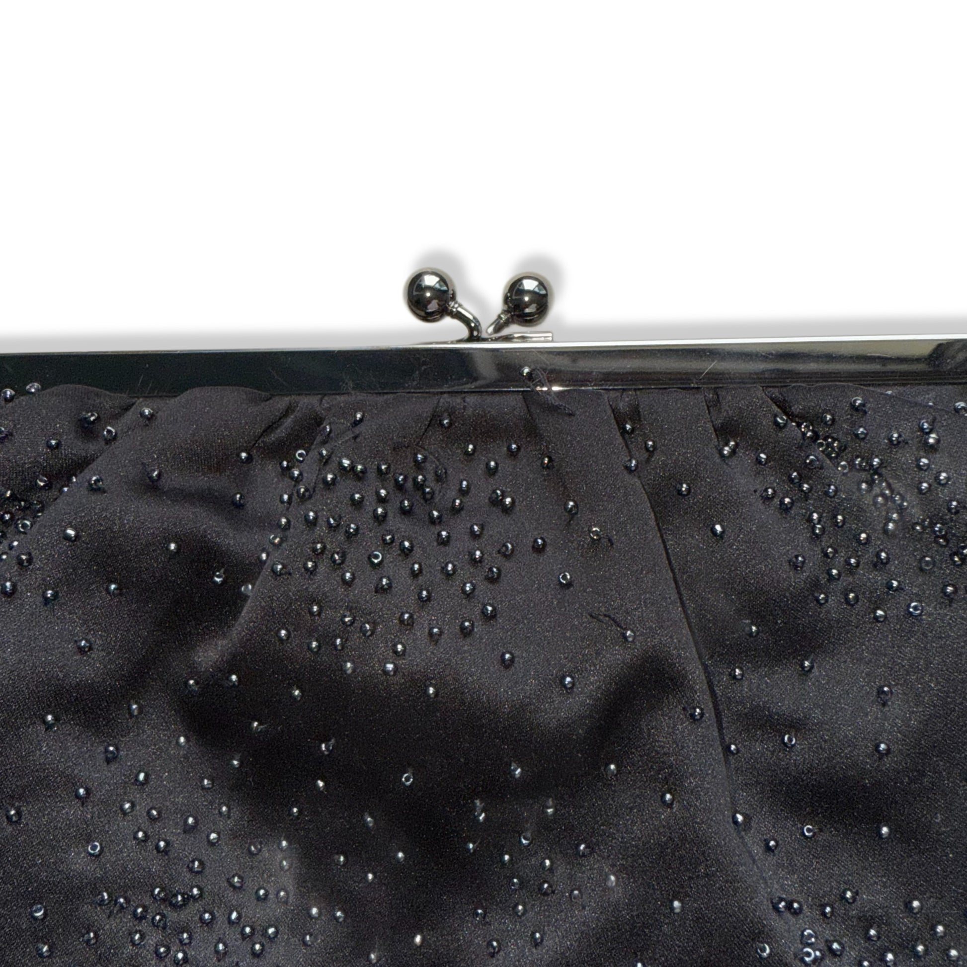 CLUTCH NEGRO SATINADO CON PEDRERÍA | EXPRESS