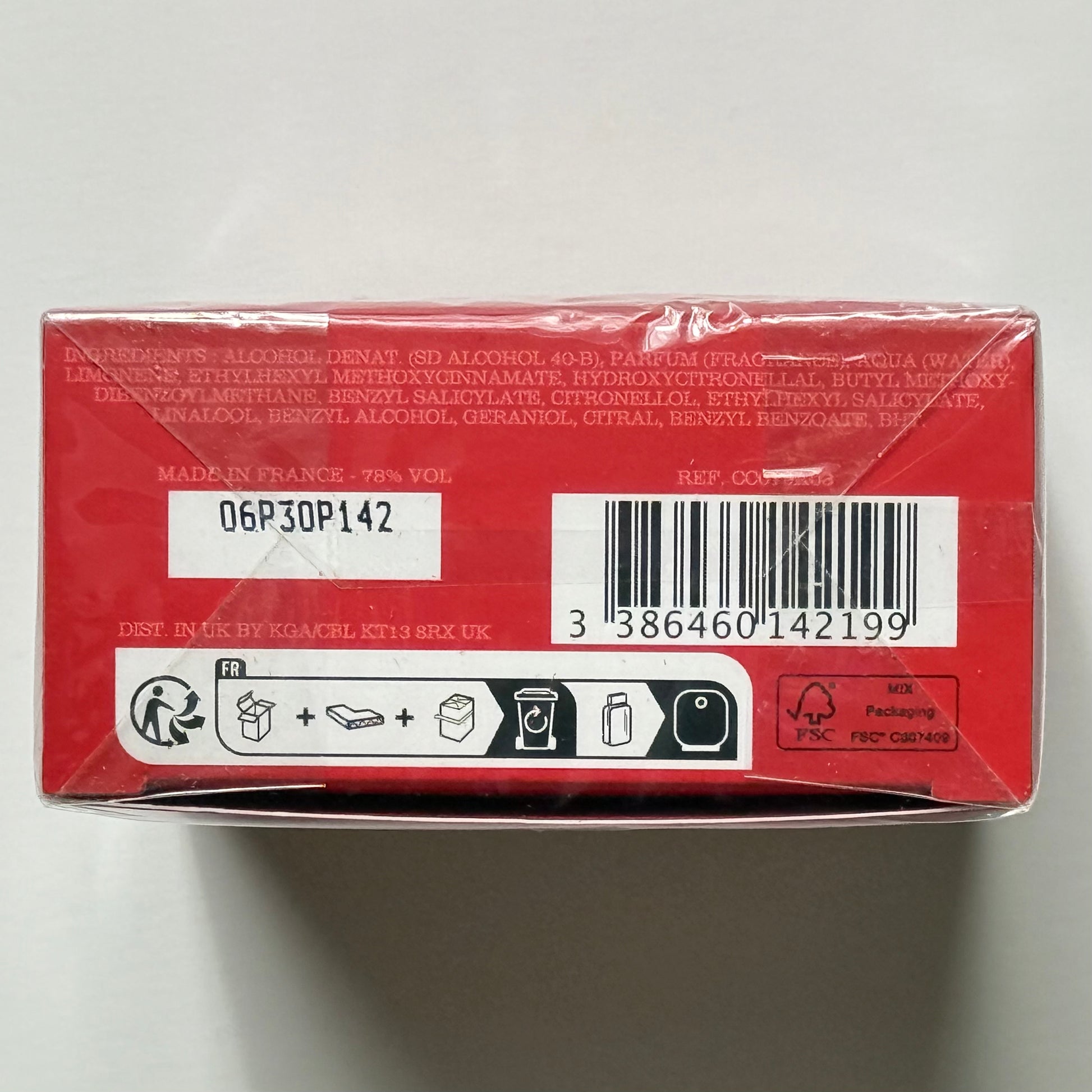 · Ingredientes Clave: Alcohol Denat. (SD Alcohol 40-B), Parfum (Fragrance), Aqua (Water).
