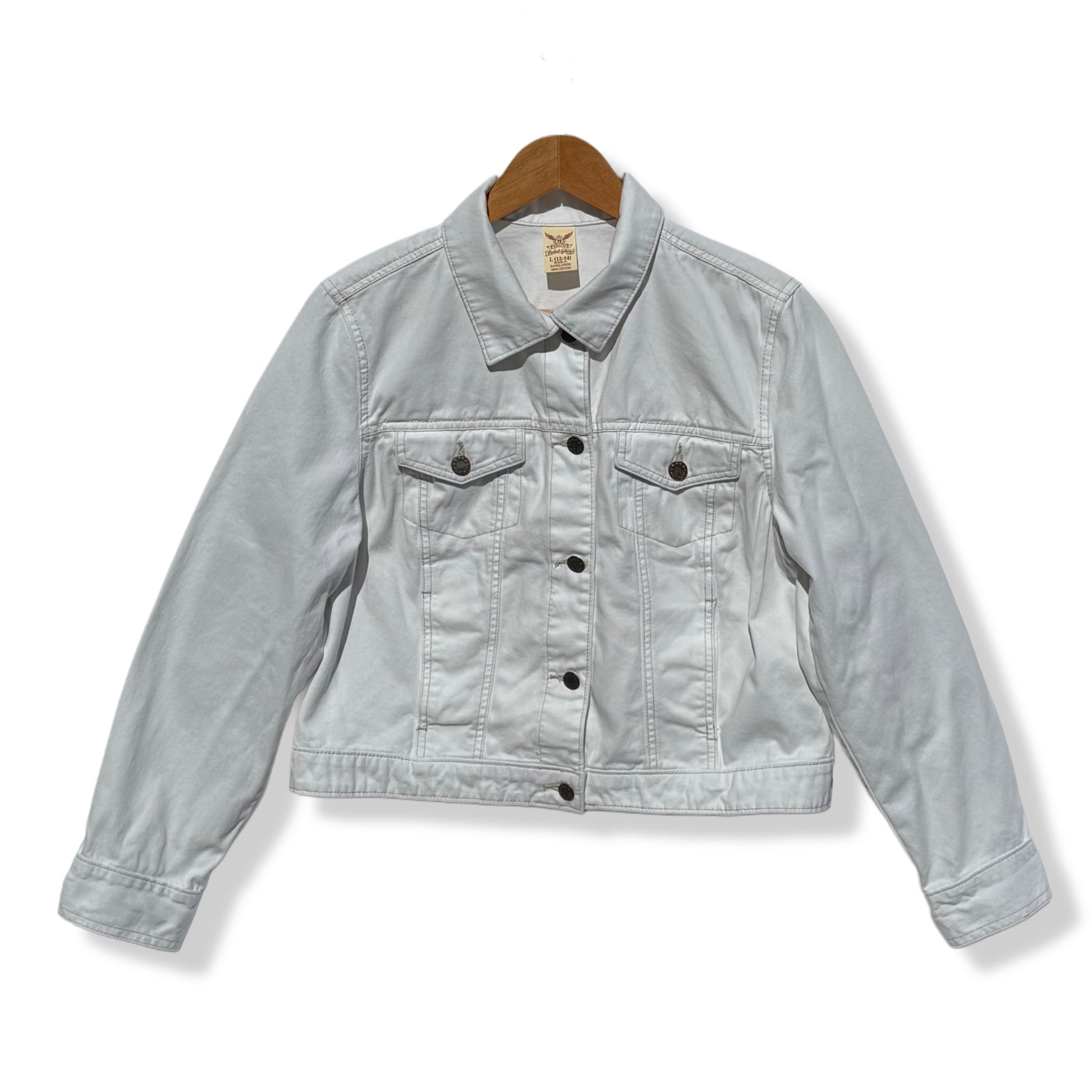 CHAQUETA DE DENIM BLANCA PARA NIÑAS | FADED GLORY | TALLA L (12–14)