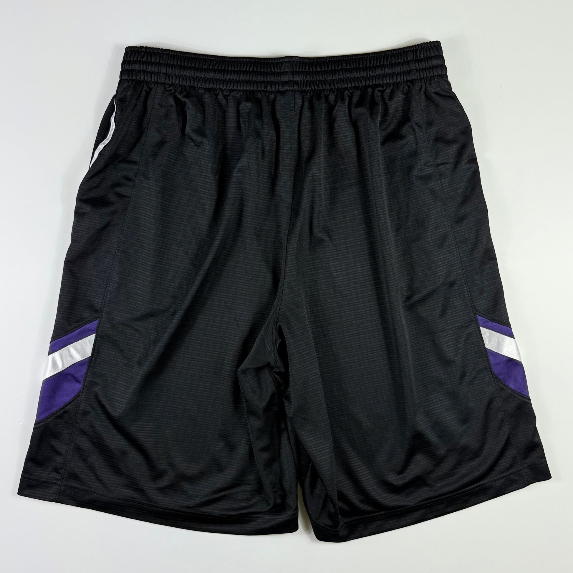 Short deportivo en tejido ligero y transpirable, con cintura elástica para ajuste cómodo. Diseño en negro con paneles laterales en contraste morado y blanco que le dan un toque dinámico. Ideal para entrenamientos, basketball, correr o uso casual deportivo.
