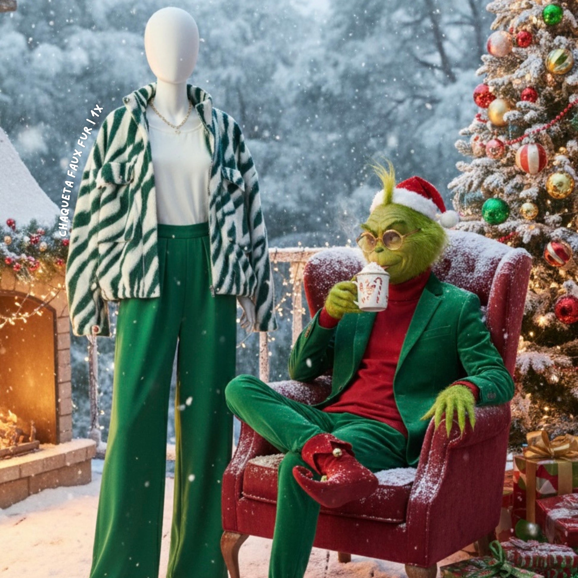 CHAQUETA FAUX FUR CON ESTAMPADO DE CEBRA VERDE | FASHION NOVA | 1X