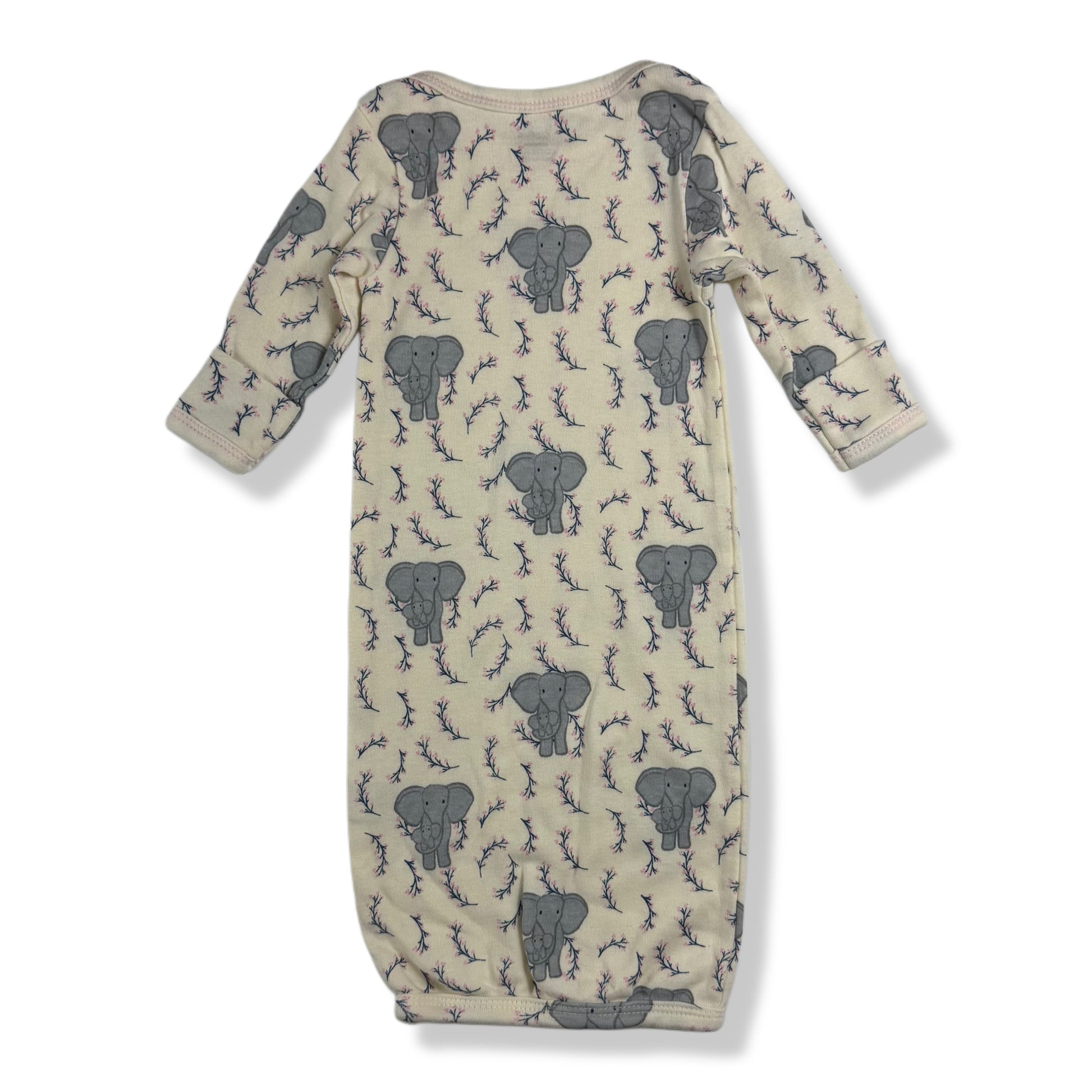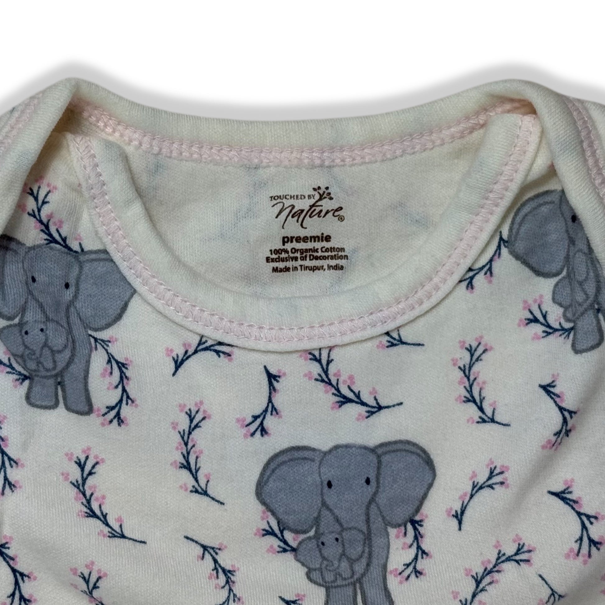 Saquito de dormir de algodón orgánico, suave, cómoda y perfecta para dormir. Ideal para piel delicada. En color crema con estampado de elefantes y ramas, diseño cómodo para recién nacidos prematuros. Tela suave y liviana, ideal para dormir y facilitar el cambio de pañal. Mangas largas y ajuste práctico en la parte inferior.