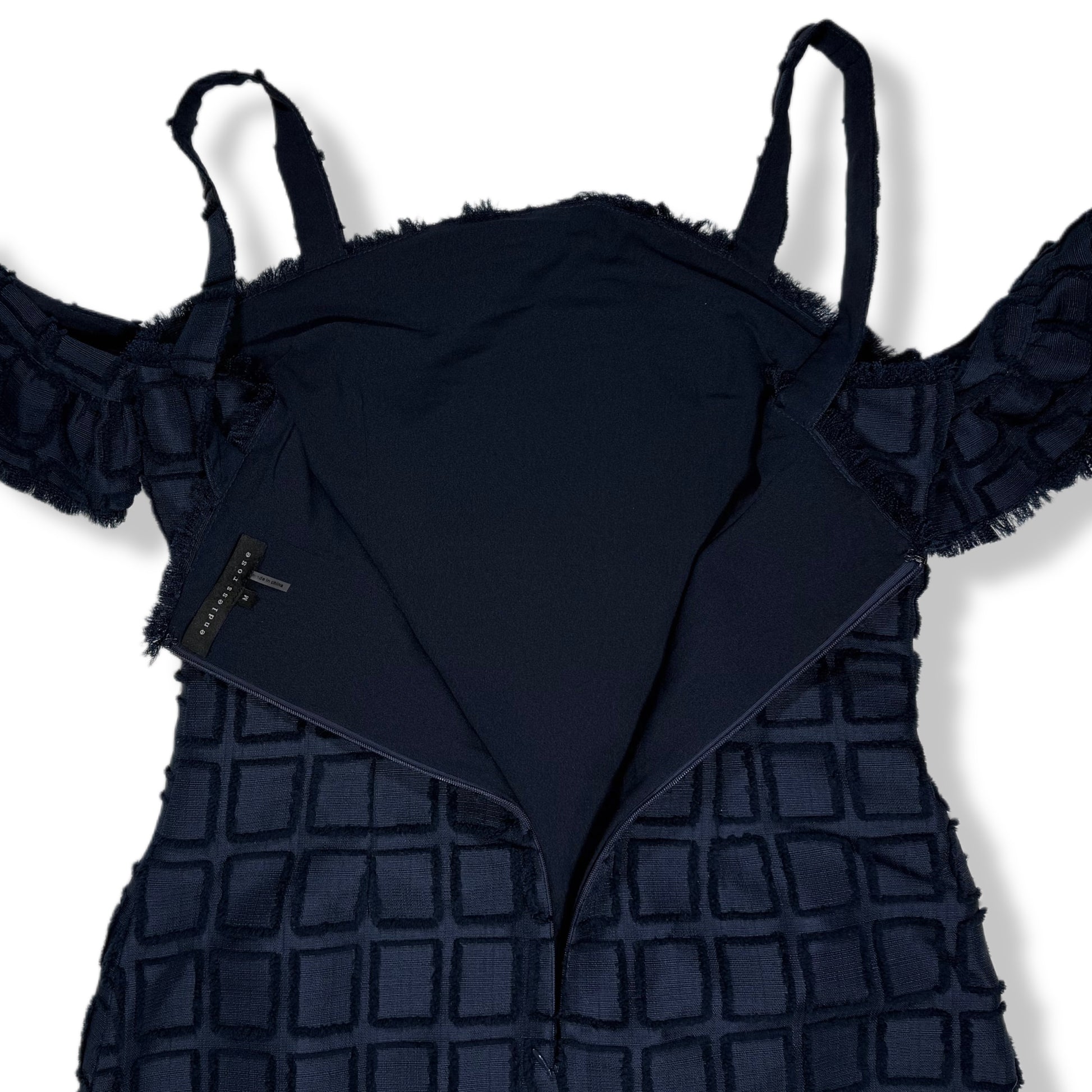 VESTIDO AZUL MARINO CON HOMBROS DESCUBIERTOS | ENDLESS ROSE | TALLA M
