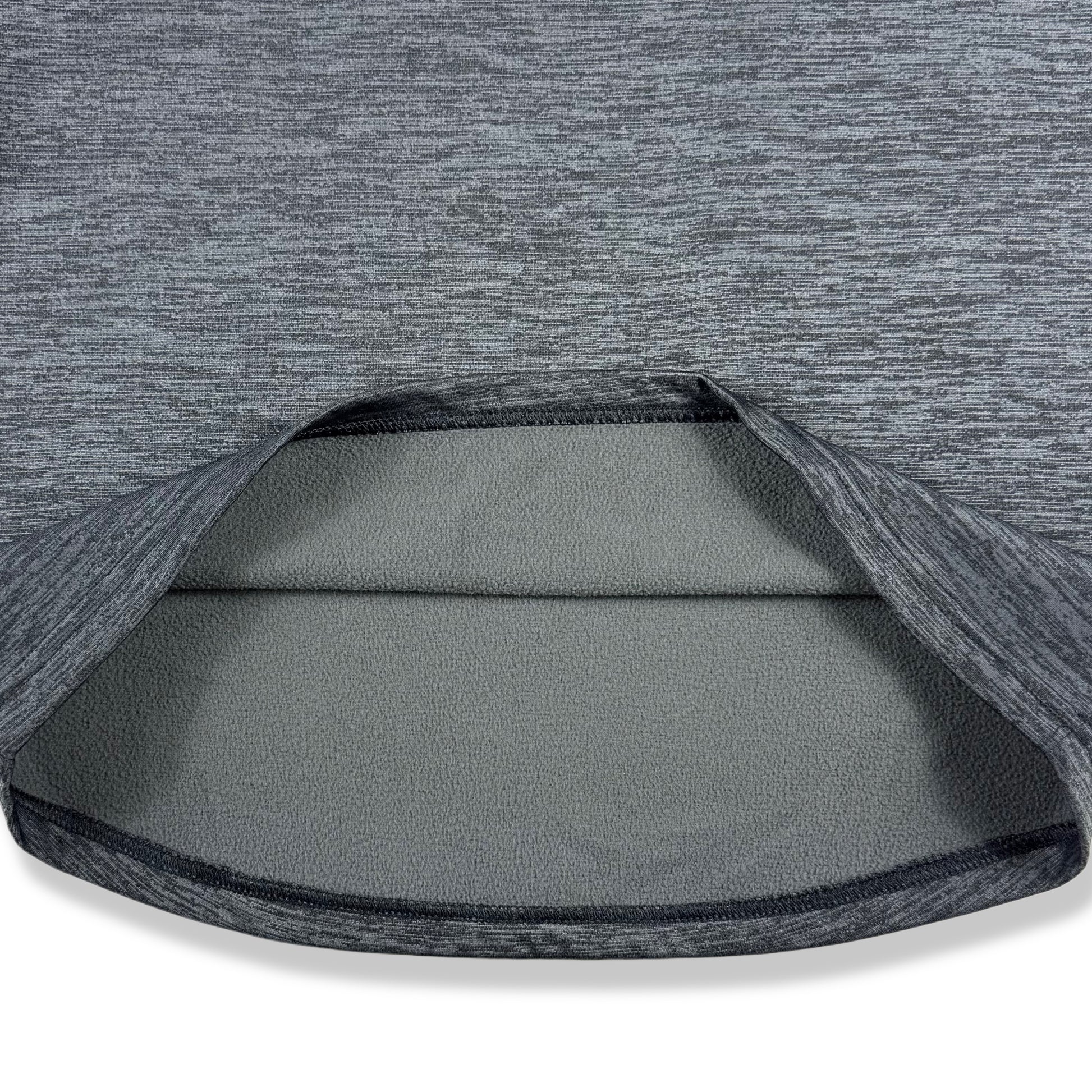 Abrigo deportivo de color gris jaspeado con interior afelpado. Diseño de media cremallera con cuello alto, ideal para entrenar o para uso diario. Tela suave y cómoda que aporta abrigo sin sentirse pesada. Logo Under Armour al frente en contraste. Corte relajado, práctico para climas frescos o espacios con aire acondicionado.