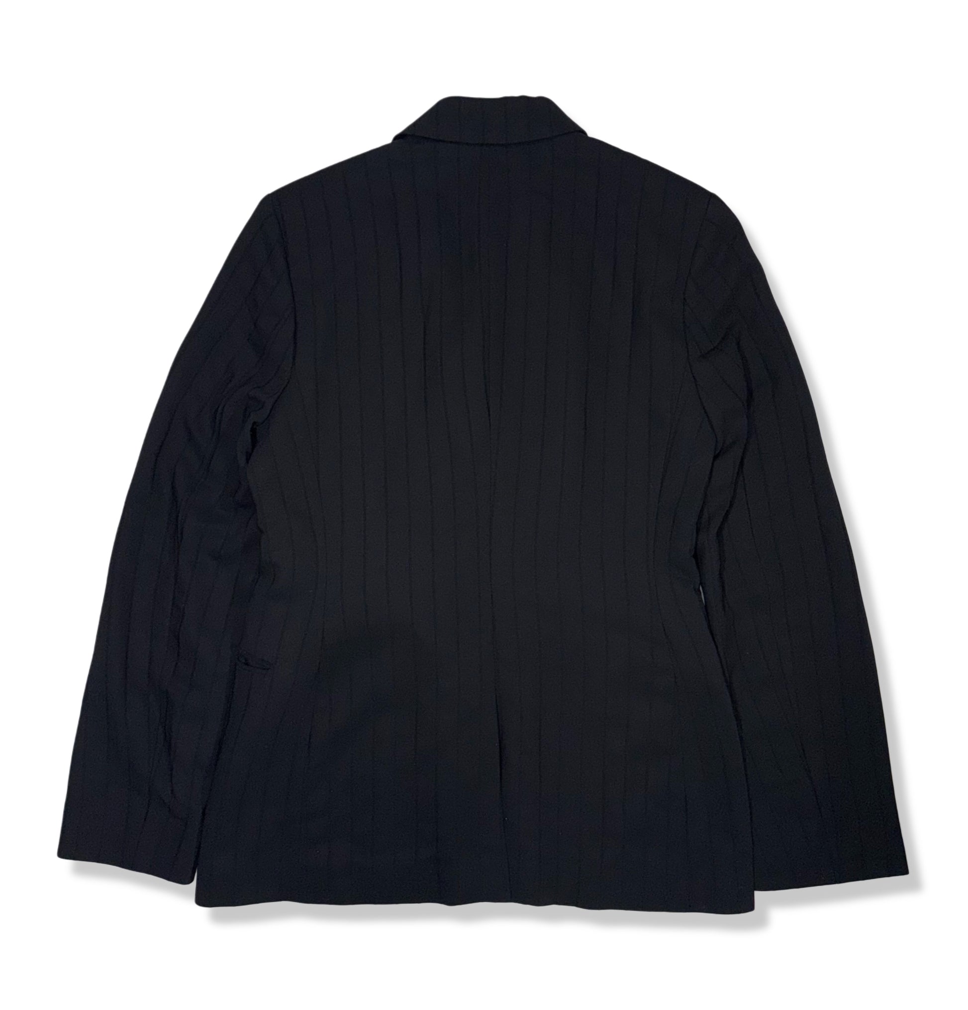 Blazer negro de corte estructurado con solapa clásica y cierre frontal de un botón. Diseño elegante y versátil, ideal para oficina o eventos formales. Confeccionado en mezcla de lana que aporta estructura y caída limpia.